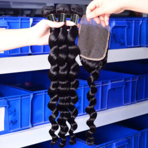 Loose Deep Wave 3 Bundles With 4*4 Lace Closure 9A Brazilian Hair Weave